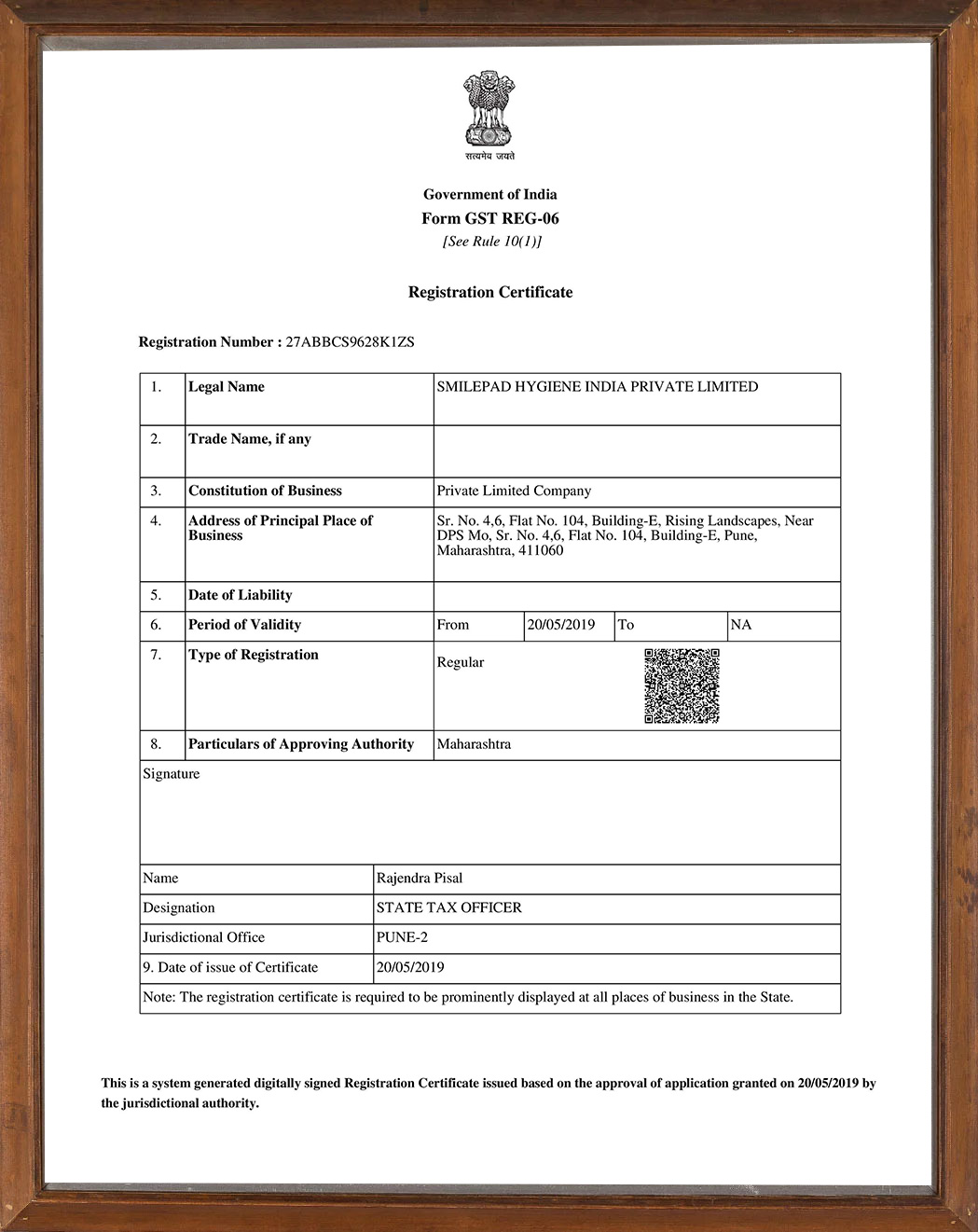 Our Official Government-Recognized Certificate